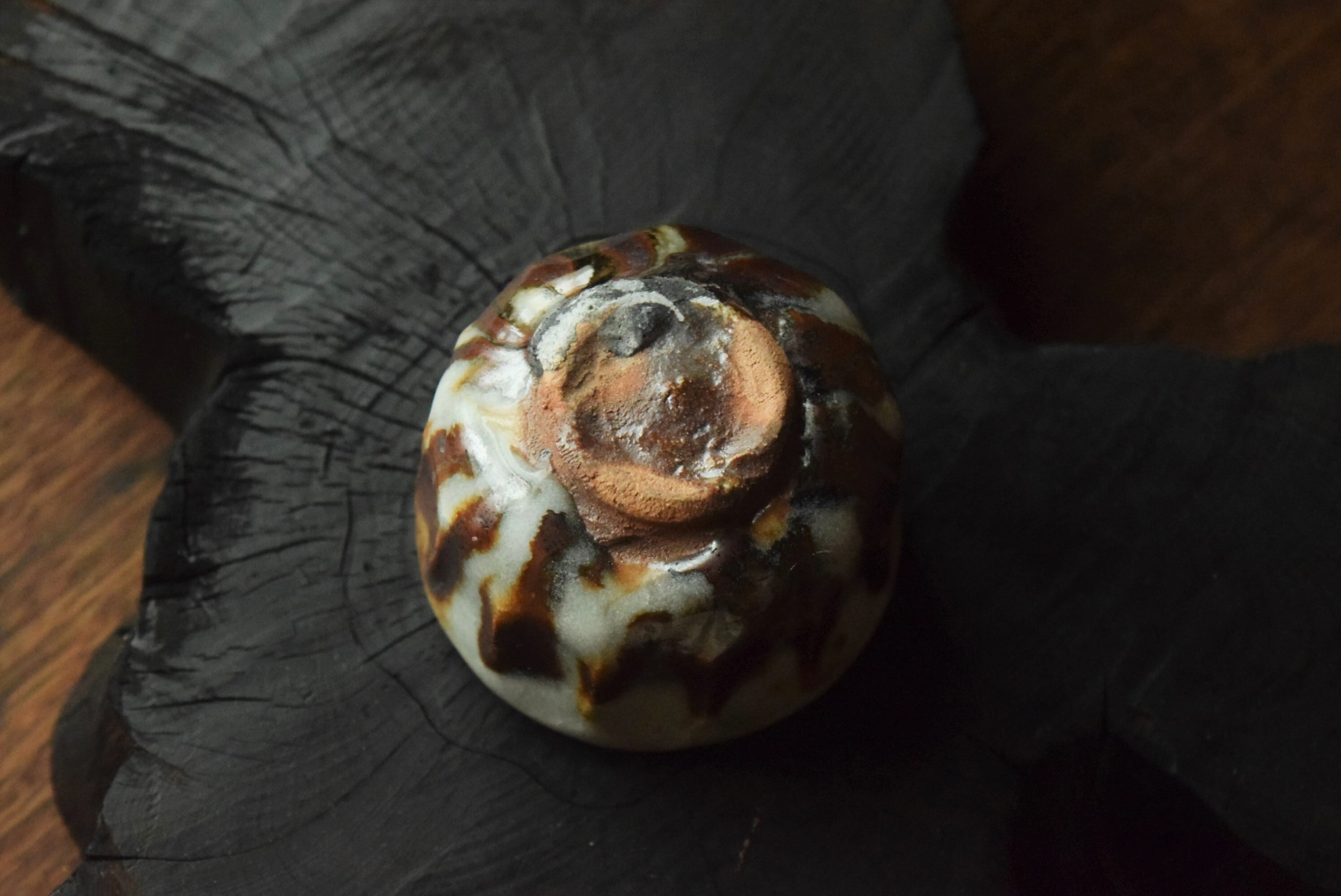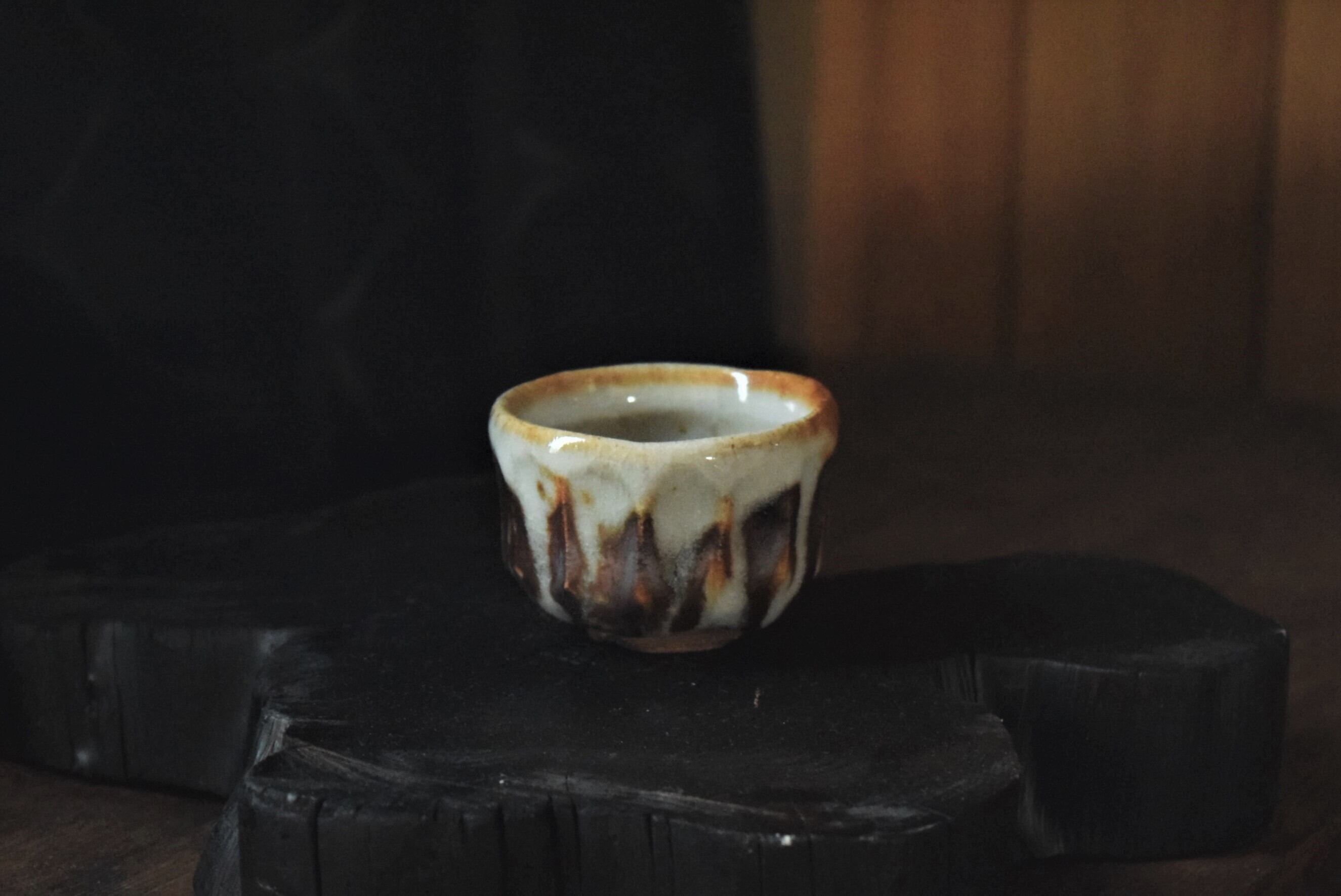 志野の穴窯焼成による、窯変志野のぐい呑みです。